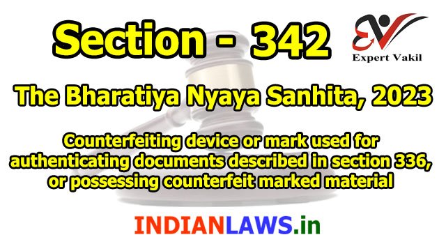 BNS Section 342 – Counterfeiting device or mark used for authenticating documents described in section 336, or possessing counterfeit marked material